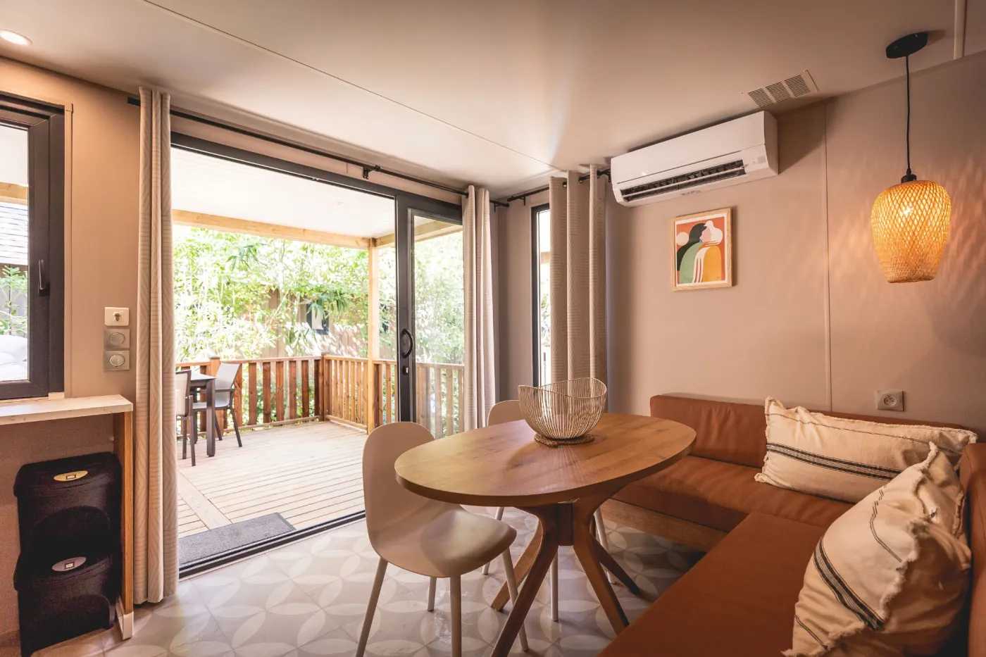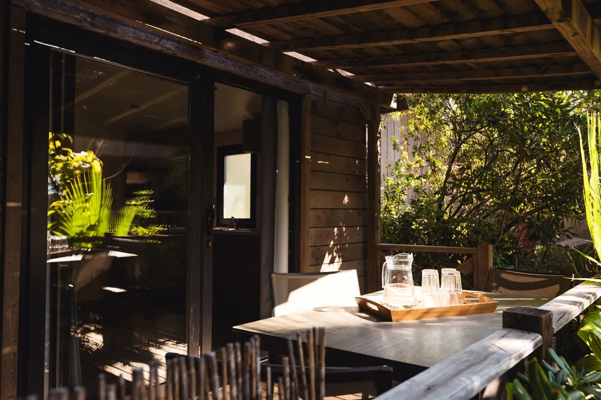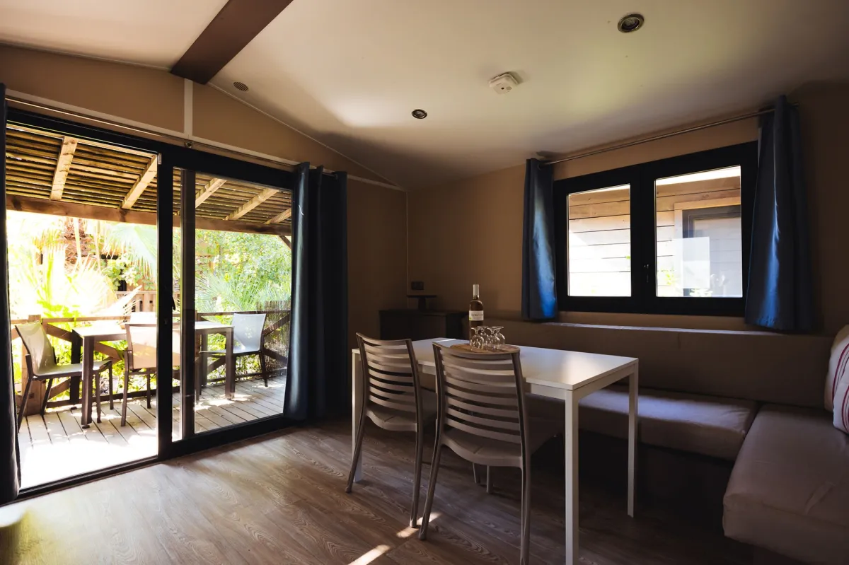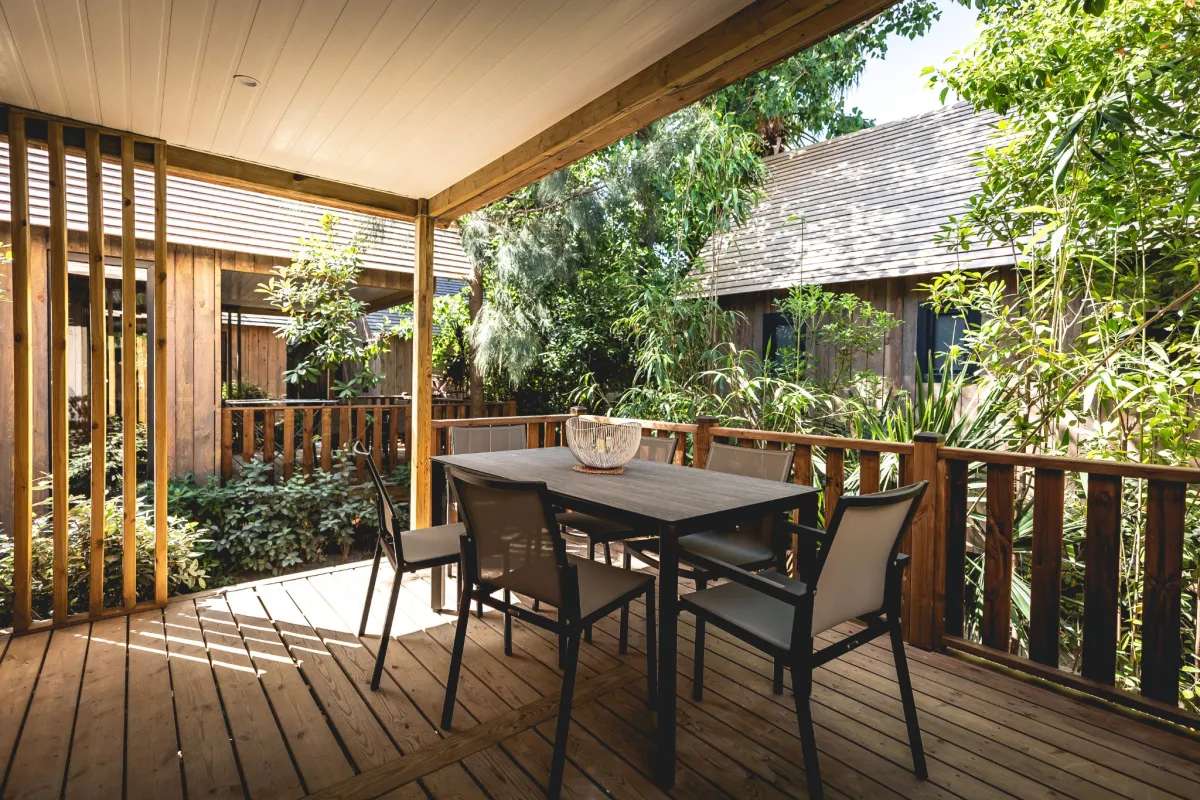 Die Unterkünfte unserer Serie "Faré Coté Jardin" befinden sich entweder an ruhigen Lagunen oder inmitten exotischer Gärten. Nur wenige Meter vom Strand entfernt bieten Ihnen diese großzügig angelegten und voll ausgestatteten Unterkünfte alles, was Sie für einen unvergesslichen Urlaub benötigen. Jedes Mobilheim besteht aus einem Wohnzimmer mit Küche, von dem aus man auf die Terrasse sowie - je nach gebuchter Kategorie - in ein, zwei oder drei Schlafzimmer gelangt.