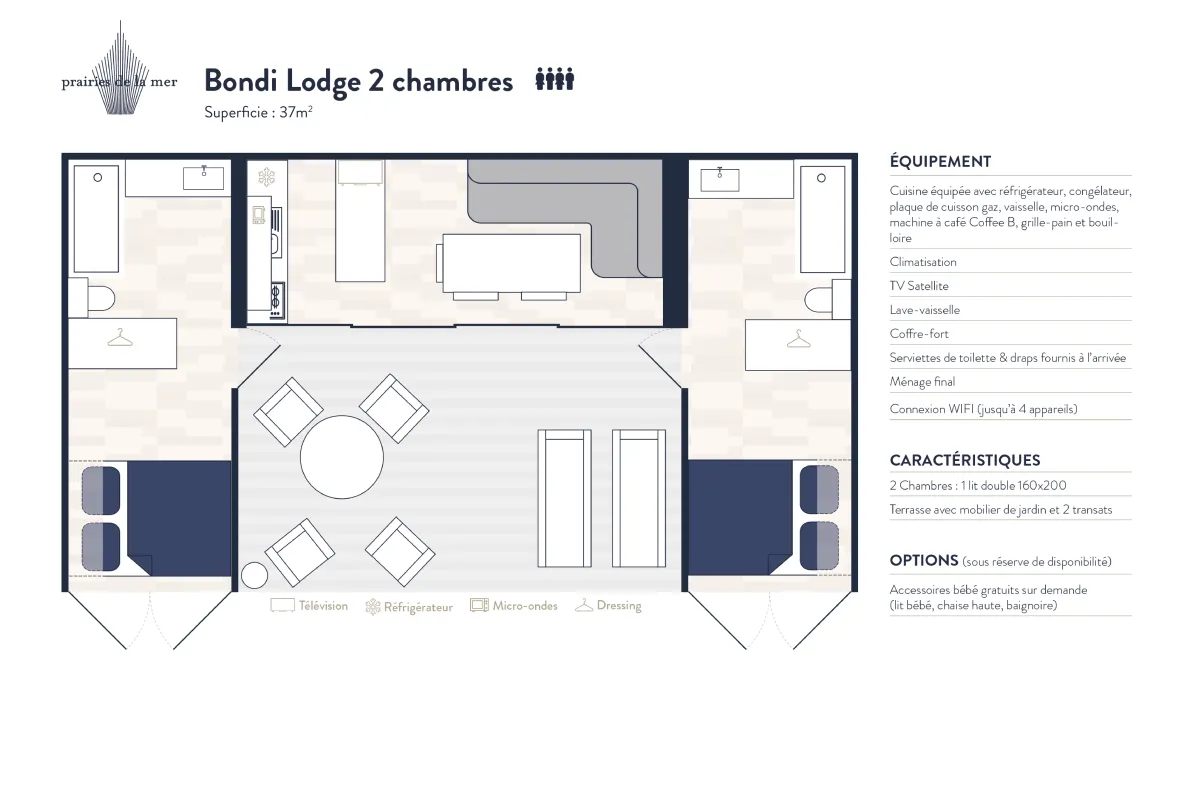 Bei den Bondi Lodges handelt es sich um eine innovative Reihe von Lodges der gehobenen Klasse, die in verschiedenen Modulen konzipiert sind: mit eigenem Bad oder mit 1 oder 2 Schlafzimmern mit Bad. Besonderes Augenmerk wurde auf die Dekoration, umweltfreundliche Designprodukte und hochwertige Dienstleistungen gelegt. Ein kühnes, modernes Design, das Teil eines innovativen Ansatzes ist, den Sie unbedingt ausprobieren sollten!
